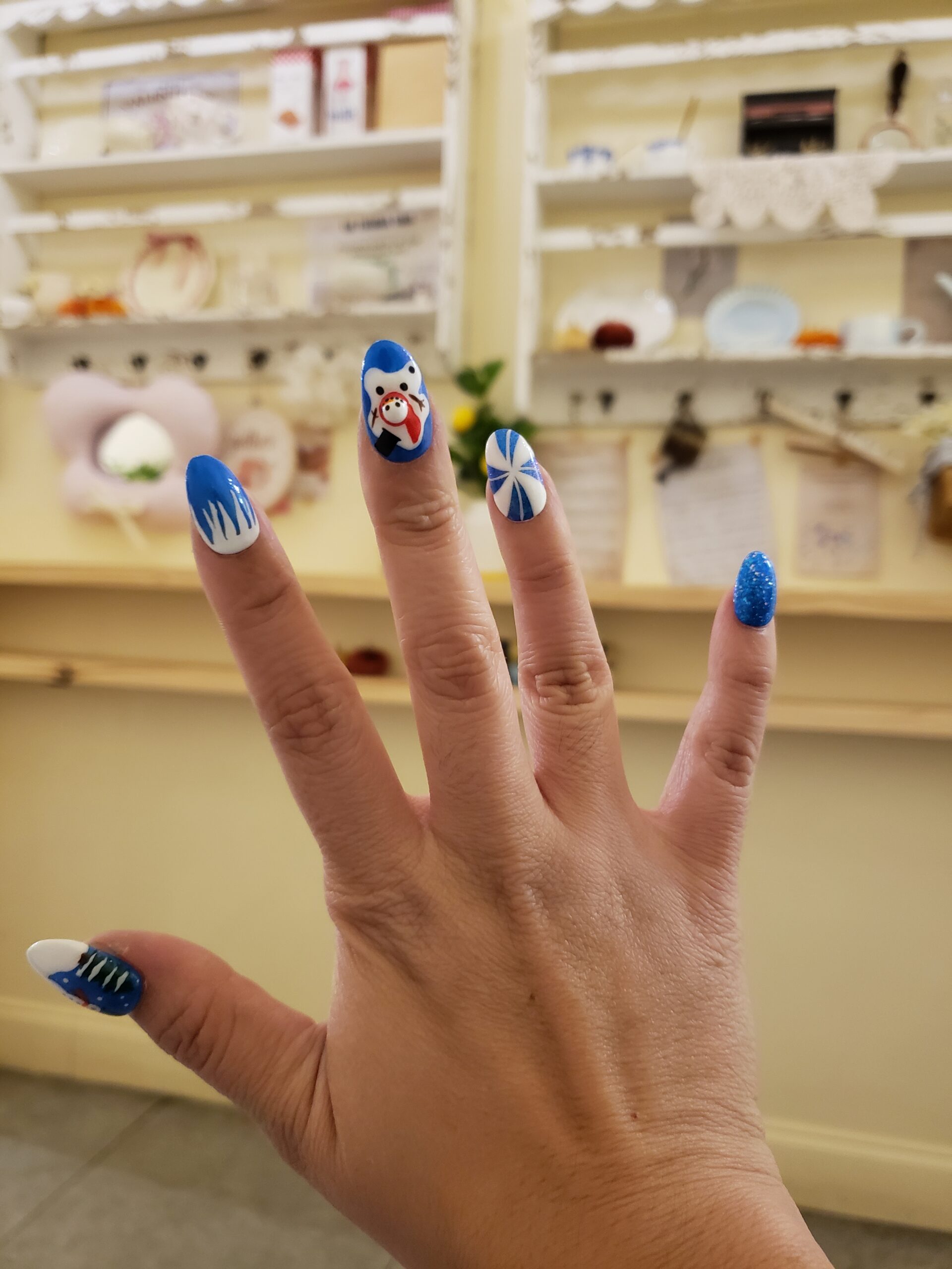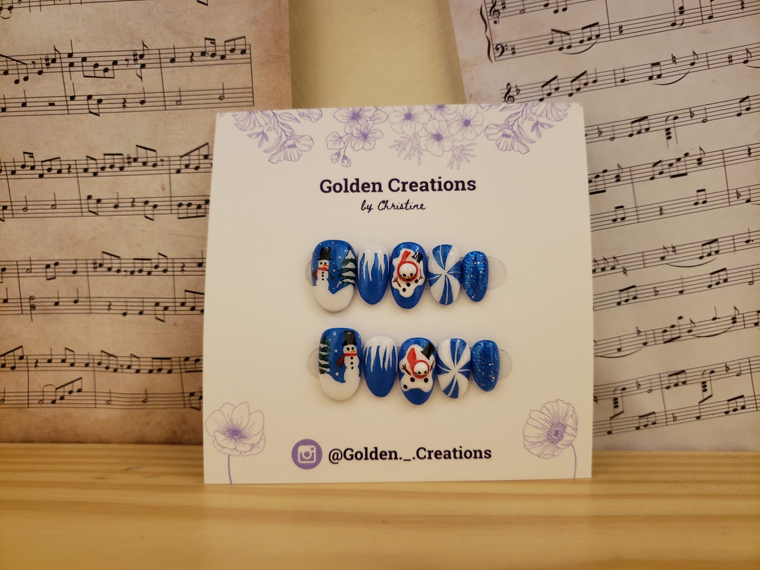 Each nail features adorable snowman details slowly “melting” into a glossy white and icy shimmer finish — giving your fingertips that magical, festive vibe. Whether you’re attending a Christmas party, a cozy family dinner, or just love collecting unique holiday nails, these press-ons are a must-have!
